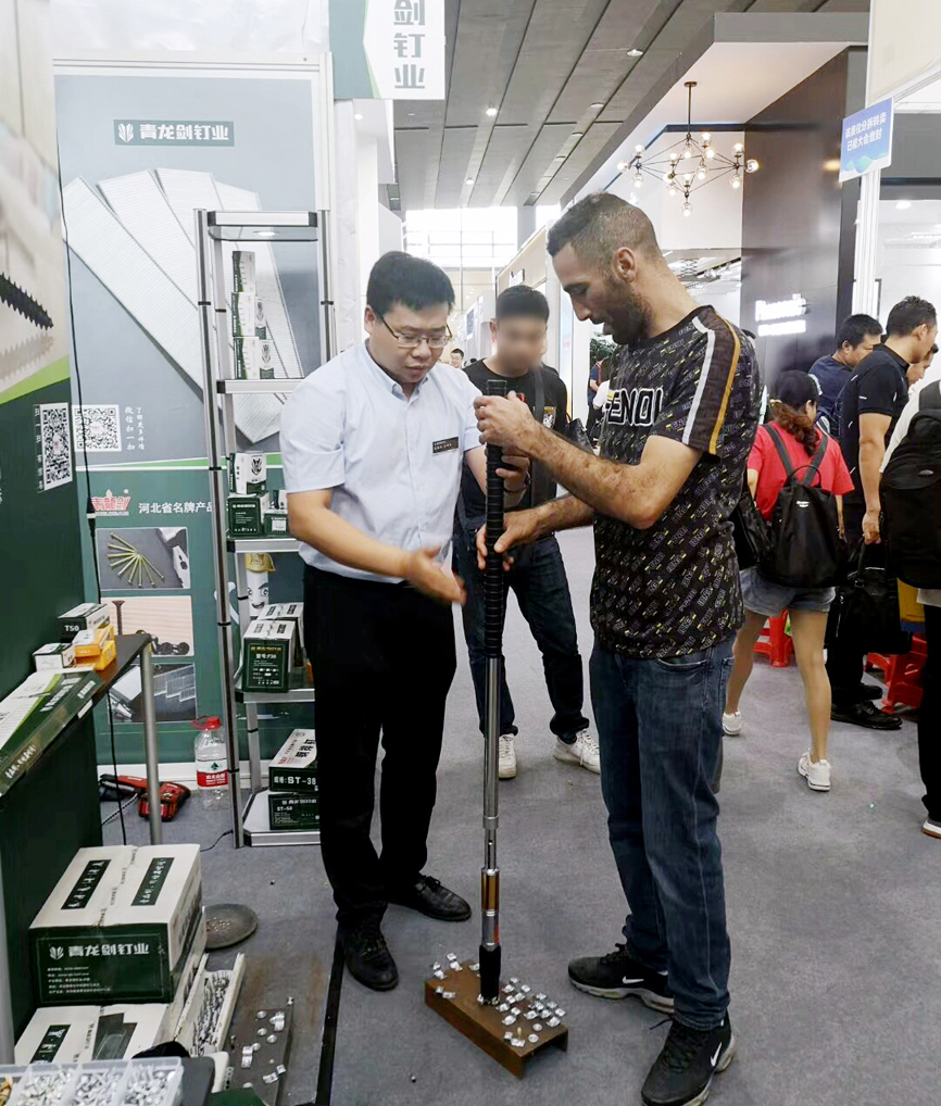 青龍劍展廳前人潮涌動,人氣火爆,此次展會展出了裝修用釘、建筑用釘、木工用釘、螺絲釘系列,吊頂釘固釘器產品系列,是所有參展商里產品最齊全、系列最多的。在此次展會展示了我們的新產品、新設計、新技術和新戰略,得到了參展者的強烈興趣和廣泛關注。
