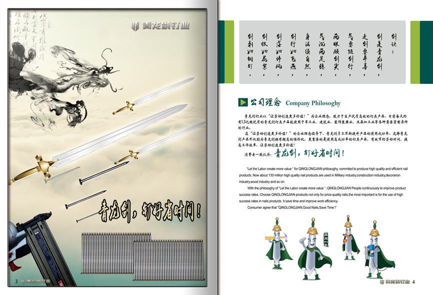 青龍劍釘業(yè)以“讓勞動創(chuàng)造更多價值!”為企業(yè)理念,致力于生產優(yōu)質高效的釘類產品。
