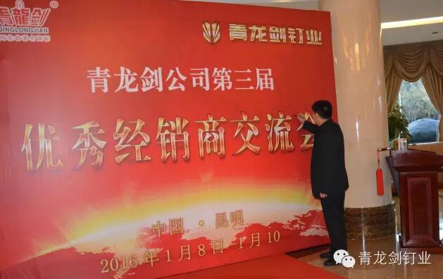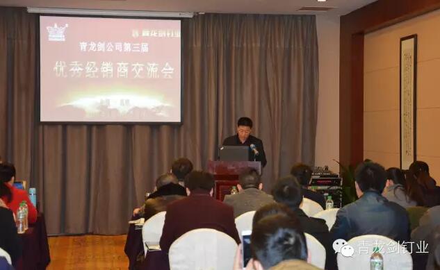 公司董事長馬志華對全國經(jīng)銷商的到來表示誠摯的感謝。——“感謝各位經(jīng)銷商來參加2016年度青龍劍公司第三屆優(yōu)秀經(jīng)銷商交流會,歡聚一堂共同探討青龍劍釘業(yè)發(fā)展大計(jì)
